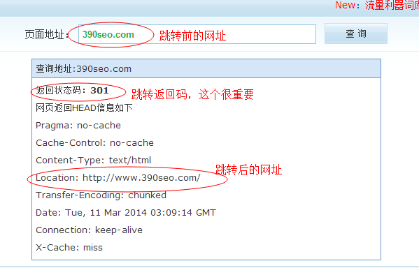 301重定向做的是不是有效,重要的就是看你想要做跳轉(zhuǎn)的那個(gè)網(wǎng)址是不是能夠返回正確的http返回碼: