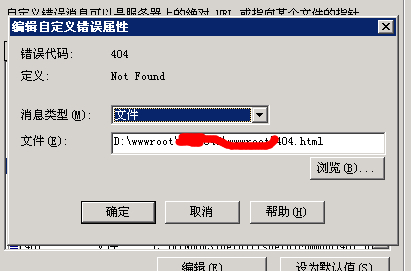 在IIS站點(diǎn)屬性里面設(shè)置了自定義的404錯(cuò)誤頁面為一個(gè)文件之后,有時(shí)一直不生效,總是提示這樣一句話:“系統(tǒng)找不到指定的文件”。