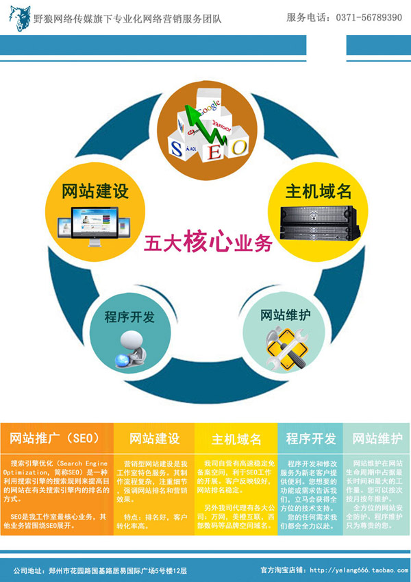 野狼網(wǎng)絡(luò)有7年的seo優(yōu)化經(jīng)驗(yàn),已幫助幾千個(gè)網(wǎng)站順利排到首頁。因?yàn)槲覀兊霓k公地點(diǎn)在鄭州,所以先建立一個(gè)網(wǎng)站,優(yōu)先為鄭州的朋友普及seo知識(shí)。我們也真誠(chéng)的希望您能夠選擇我們?yōu)槟木W(wǎng)站服務(wù)!