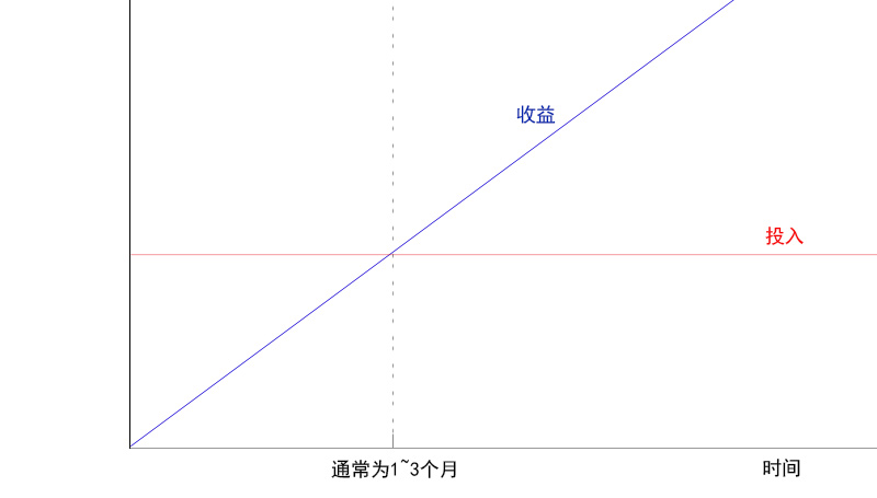 我們用下圖表示隨著時(shí)間的變化,投入和收益之間的關(guān)系:
