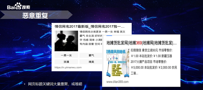 百度搜索資源平臺(tái)最近宣傳方面做的很到位,還到各地開講座,宣傳自己的算法調(diào)整。說明百度越來越成熟,越來越自信。而且現(xiàn)在通過這樣的方式告訴站長們,我們知道哪些作弊行為,知道哪些問題,也在做出相應(yīng)的算法調(diào)整,這種恐嚇式的宣傳要比什么都不說只管懲罰跟讓人望而生畏。所以正規(guī)的SEO也能更好地與百度形成互動(dòng),也方便百度對正規(guī)優(yōu)化進(jìn)行保護(hù)。