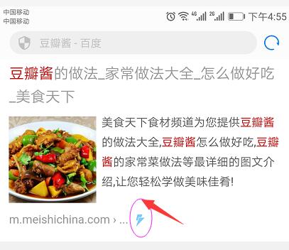 現(xiàn)在有些手機(jī)搜索結(jié)果里出來(lái)一個(gè)閃電的圖標(biāo),如下圖的那個(gè)快照右側(cè)藍(lán)色閃電圖標(biāo):