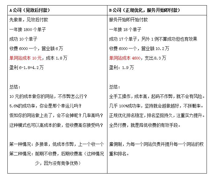 先做單,見效后付款的接單方式,大部分是打的一個(gè)概率。畢竟有一些客戶不懂SEO,有些網(wǎng)站簡(jiǎn)單修改一下標(biāo)題、給目標(biāo)關(guān)鍵詞定小一些、老網(wǎng)站作弊一下就能達(dá)到排名上首頁的目的。還有一些網(wǎng)站,就是不動(dòng)他,搜索引擎調(diào)整的時(shí)候也會(huì)回光返照一樣的排名上首頁一下。所以有些人就鉆這個(gè)空子,低成本的瘋狂接單??瓷先ズ苊篮玫氖虑椋鋵?shí)只不過是一場(chǎng)騙局。