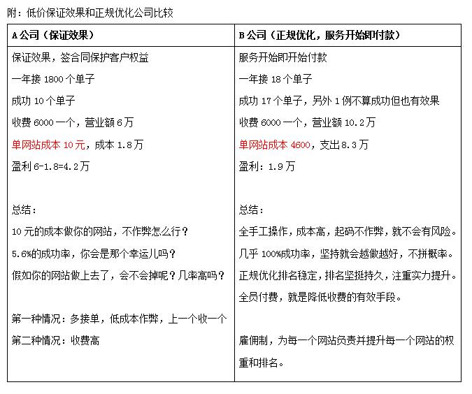 附:低價(jià)保證效果和正規(guī)優(yōu)化公司比較