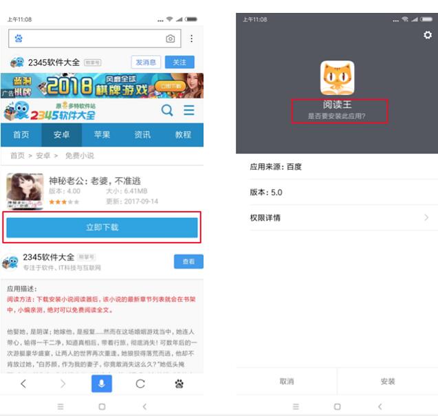 示例(1):網(wǎng)頁頁面標(biāo)題描述為小說下載,但是下載下來的卻是APP;