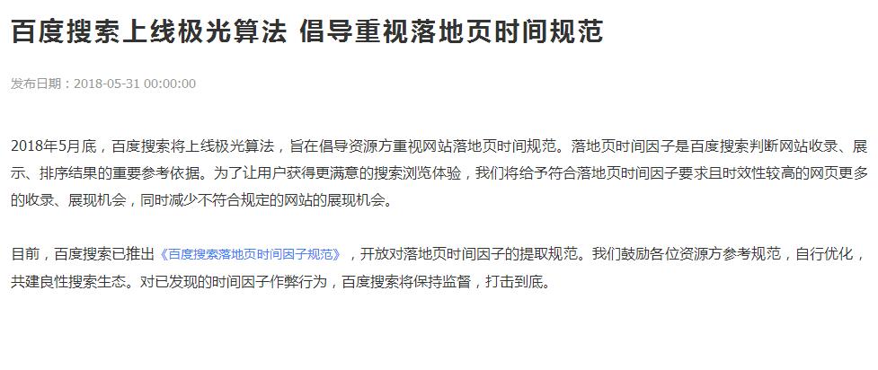 比如,前不久百度發(fā)布的關(guān)于百度搜索落地頁(yè)時(shí)間因子規(guī)范中提到了頁(yè)面的發(fā)布時(shí)間都是應(yīng)該這樣來(lái)寫(xiě)的。要標(biāo)注好時(shí)間,這對(duì)SEO非常有幫助。