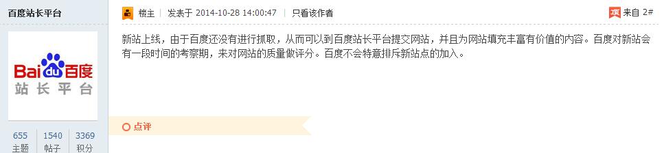 (2)百度不會特意排斥新站點的加入,意思是還會有意的扶植一下新網站。