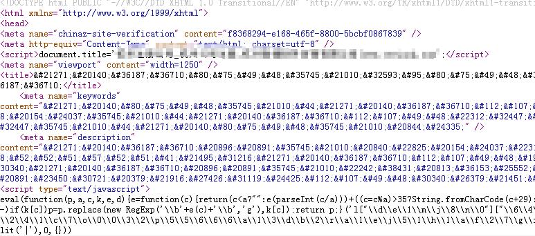 這種代碼看似沒有什么,但是實(shí)際上他的原理是,給字符用代碼表示,然后通過js的方式來加載你的標(biāo)題,實(shí)際上是搜索引擎里顯示他想要顯示的標(biāo)題,而用戶打開卻沒有明顯的感知,覺得沒啥變化,比較有隱蔽性。