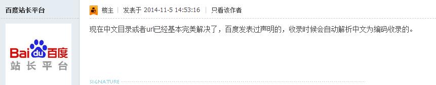 百度站長資源回復是:現(xiàn)在中文目錄或者url已經(jīng)基本完美解決了,百度發(fā)表過聲明的,收錄時候會自動解析中文為編碼收錄的。