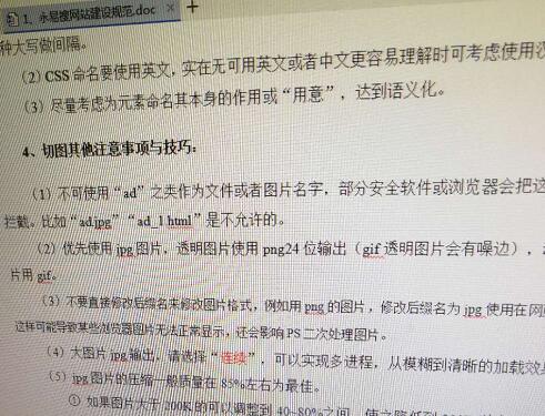 這些細(xì)節(jié)建議或者規(guī)定,也會(huì)隨著進(jìn)行變化和補(bǔ)充,會(huì)越來越完善,保證所有成員能夠按照這樣的標(biāo)準(zhǔn)進(jìn)行,不管是對于圖片的輸出,美工的設(shè)計(jì)或者是界面的一些div命名等都會(huì)有所要求。這只是一小部分,我們有整整幾十頁的技術(shù)標(biāo)準(zhǔn),包括css的命名,廣告法的一些規(guī)定等等,大家也可以到我公司來查看。