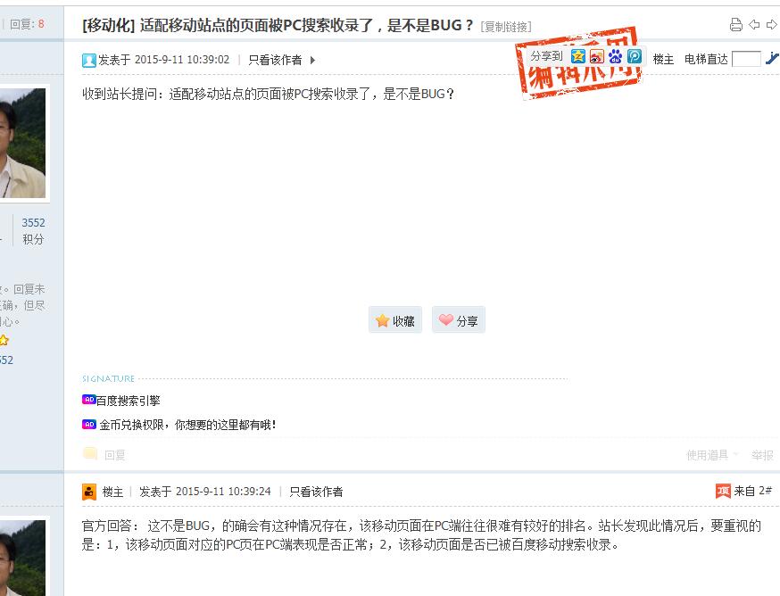 官方回答: 這不是BUG,的確會有這種情況存在,該移動頁面在PC端往往很難有較好的排名。站長發(fā)現(xiàn)此情況后,要重視的是: