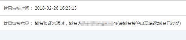 域名驗(yàn)證未通過,域名為XXX(該域名核驗(yàn)出現(xiàn)錯(cuò)誤:域名已過期)