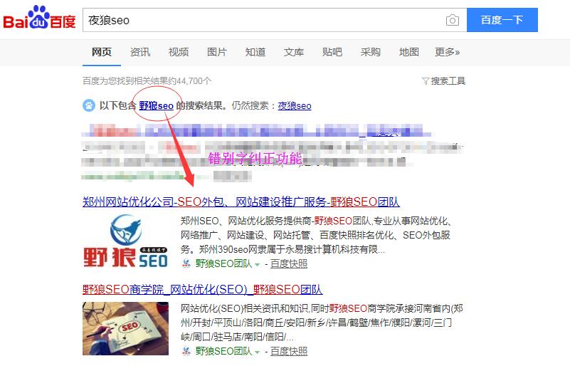 有一些品牌詞,剛建立的時(shí)候,因?yàn)槿藗兯阉鞯谋容^少,就會(huì)出現(xiàn)錯(cuò)別字糾正。比如說(shuō)你搜:“夜郎SEO”,搜索引擎就會(huì)認(rèn)為,你搜索錯(cuò)了,應(yīng)該是想找:“野狼SEO”吧!于是,就會(huì)推薦出“野狼SEO”的結(jié)果。