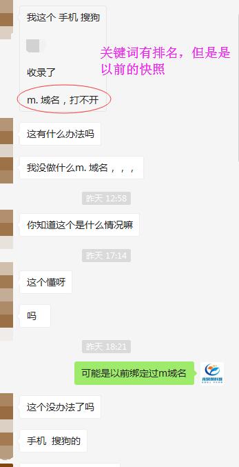 這兩天有個(gè)客戶咨詢,我網(wǎng)站某個(gè)關(guān)鍵詞,搜索起來,是在首頁有排名,但是網(wǎng)站卻無法打開。原來是以前曾經(jīng)綁定過m域名到網(wǎng)站,后來不用m域名了,網(wǎng)站就打開不開。