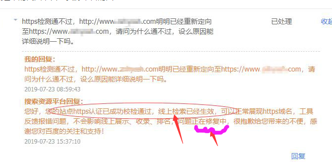 這樣的情況,已經(jīng)出現(xiàn)很長(zhǎng)時(shí)間,也有人給站長(zhǎng)資源平臺(tái)留言,得到的答復(fù)是,正在修復(fù)這個(gè)問(wèn)題: