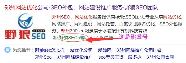 比如野狼SEO團隊的搜索結(jié)果頁里就是顯示的:“野狼SEO團隊”而不是網(wǎng)址 http://bjsjjh.cn/,這樣看起來逼格更高一些,點擊率也會更好點。