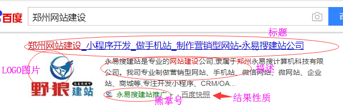 網(wǎng)站搜索結(jié)果:標(biāo)題/描述/LOGO圖/熊掌號名/結(jié)果性質(zhì)詳解