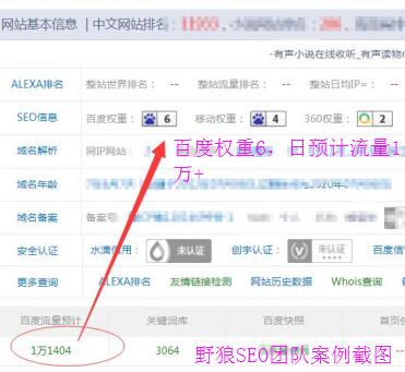 野狼SEO團(tuán)隊(duì)是怎么把網(wǎng)站做上百度權(quán)重6,預(yù)計(jì)流量1萬(wàn)+的