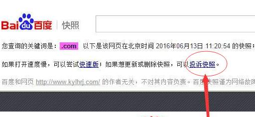這里有“投訴快照”按鈕,進(jìn)入到百度資源平臺(tái)上的投訴快照的功能,提交投訴即可。
