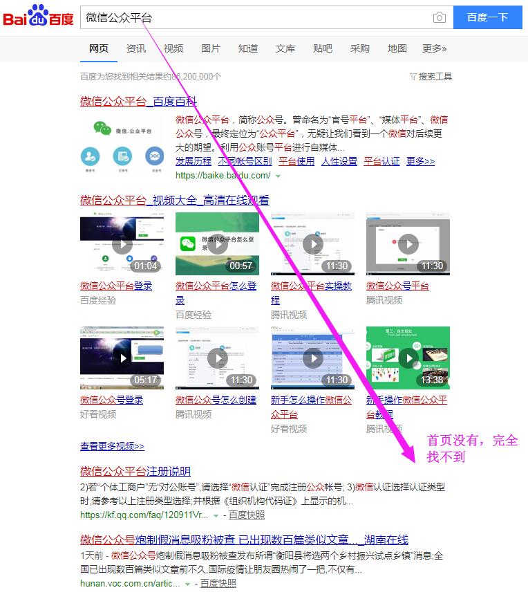 我難道搜索“微信公眾平臺”,只是為了看一些百度百科,一些視頻嗎?