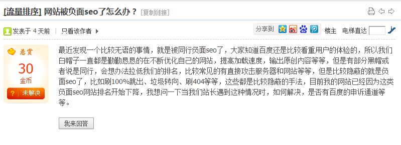 最近看到論壇里有這樣一個帖子:網(wǎng)站被負面seo了怎么辦?