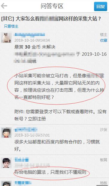 樓主意思是,我們自己做的小網(wǎng)站采集會(huì)被打擊,但是有一個(gè)大網(wǎng)站采集,就沒事兒。而且有大量跟他網(wǎng)站無關(guān)的內(nèi)容,但是排名也很好。這種事情,不出意外地,二樓就開始酸了:很多大戰(zhàn)都適合百度內(nèi)部有合作的,習(xí)慣就好。。。。