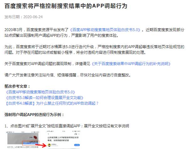 現(xiàn)在很多的搜索結(jié)果會(huì)調(diào)用起APP,比如說(shuō)京東、支付寶等,比較煩人。百度最近對(duì)冰桶算法5.0進(jìn)行迭代升級(jí),嚴(yán)格控制搜索內(nèi)的APP調(diào)起等違反落地頁(yè)體驗(yàn)規(guī)范的行為。