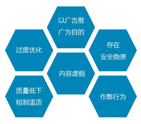 說的比較明確了。一方面是假內(nèi)容,另外一方面是不安全,還有就是可讀性不強(qiáng)過度優(yōu)化,再個(gè)就是作弊了的內(nèi)容??傊徽5膬?nèi)容都不受到搜索引擎的待見。
