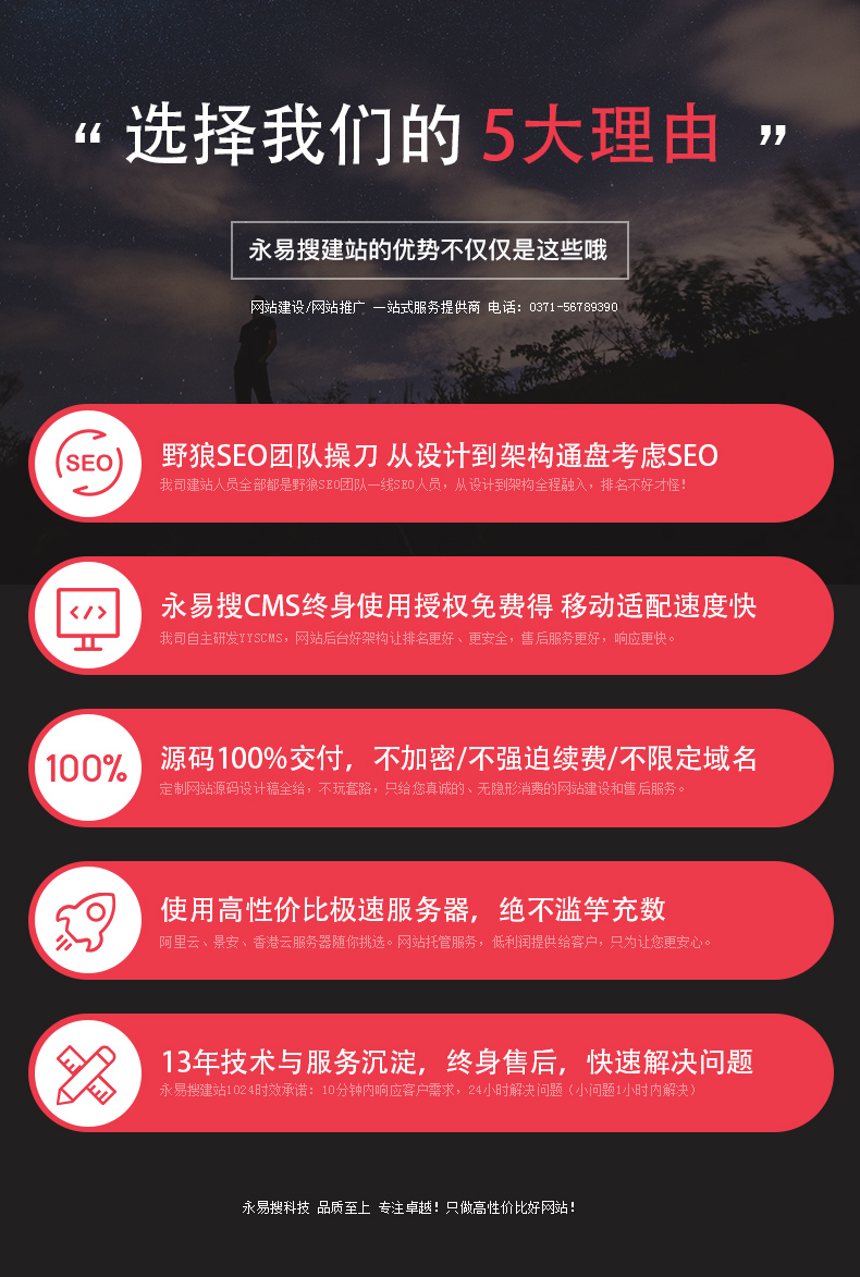 最后再總結(jié)一下,選擇鄭州做網(wǎng)站的專業(yè)公司——永易搜建站的5大理由!