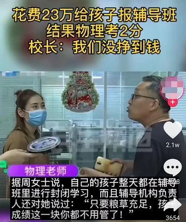 就像前些時候看的一個新聞,花了23萬給孩子報考輔導(dǎo)班,結(jié)果物理考了2分: