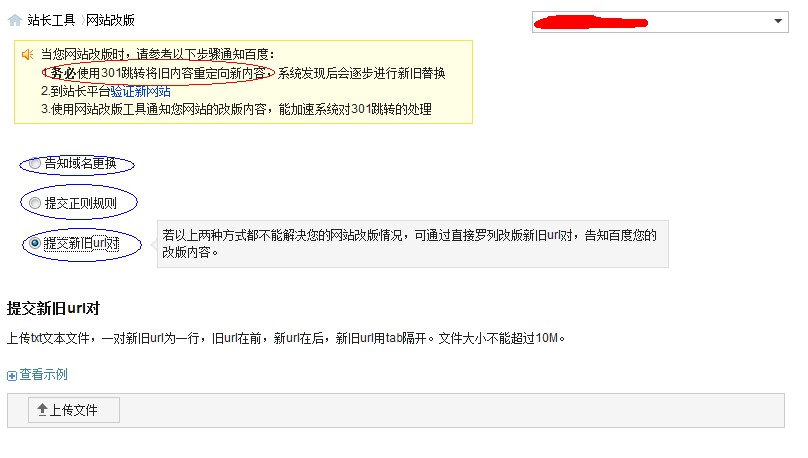 需要提醒的是,再做301的時(shí)候,需要先做一個(gè)301跳轉(zhuǎn),之后再在百度站長(zhǎng)平臺(tái)上提交,如果沒(méi)有做的話,改版工具提交了也不會(huì)有效果。