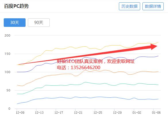 這是我們做的案例,一百多個(gè)有指數(shù)關(guān)鍵詞首頁(yè),而且還在不停的攀升: