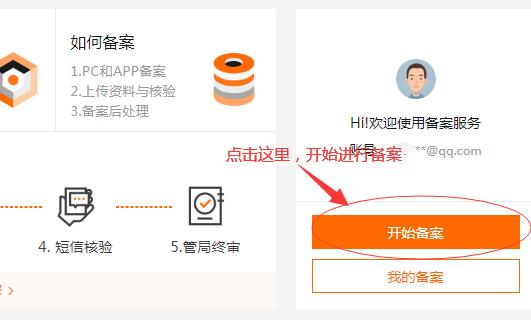 沒有賬號就自己注冊一個,注冊按鈕是在網(wǎng)頁的右上角。步驟也比較簡單。注冊好賬號登陸到備案中心,點(diǎn)擊“開始備案”按鈕,進(jìn)行備案信息填寫: