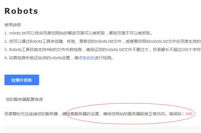 真是醉了,度娘的robots.txt驗(yàn)證就沒有準(zhǔn)過。檢查并更新的時候,一直提示有問題。但事實(shí)上網(wǎng)站一切都正常。并沒有出現(xiàn)500的返回錯誤。這是什么原因呢?