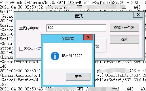 日志里確實(shí)沒有訪問記錄,更別提500出錯了。