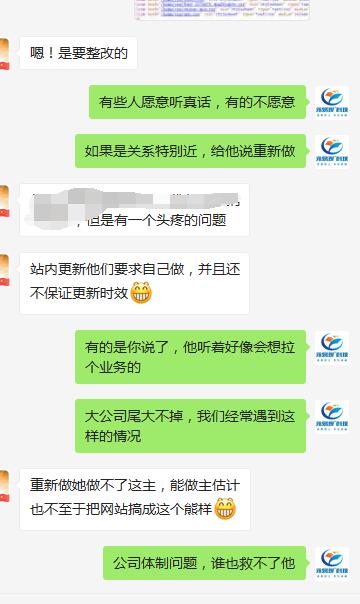 我們也接過(guò)不少大型的公司,一般都是老板牽頭找的SEO公司。但大部分的稍微大一點(diǎn)的公司,體制臃腫,讓文員或者其他職員來(lái)找SEO公司,最后的結(jié)果都不是太好。這是我們一直很好的一個(gè)合作伙伴,推薦的公司。就很讓人頭疼: