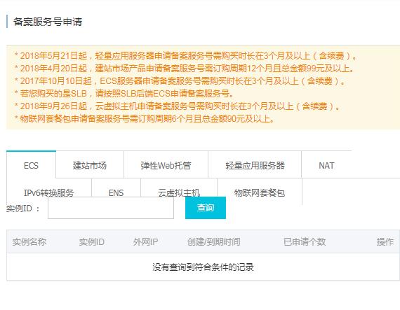 備案服務(wù)號的申請需要具備2個條件:1、賬號下有未到期的服務(wù)器 2、服務(wù)器上的備案服務(wù)號沒有超限額(比如ECS最多申請5個)。