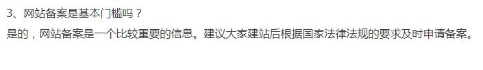 沒有明確的說,會不會對有備案的網(wǎng)站進(jìn)行評級提升,但一篇文章,3個地方都提到要進(jìn)行備案,應(yīng)該不只是說說而已。如果我是百度的技術(shù)工程師,一定會把備案與否作為搜索權(quán)重的直接判定依據(jù)。