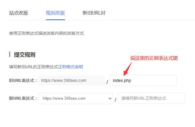 百度站長資源平臺,是很神經(jīng)病的。我們提交一個鏈接的改版規(guī)則,最后返回是正則格式不正確。因為前些時候首頁收錄混亂,把index.php收錄了。所以要提交一個這樣的改版規(guī)則。