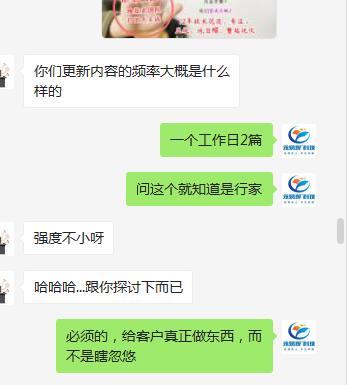 因?yàn)樗?,以前做的都是一個(gè)月能更新兩篇就不錯(cuò)了。所以效果很差,現(xiàn)在也沒(méi)有信心去做SEO了?,F(xiàn)在找到我們準(zhǔn)備在合作。很多朋友介紹的,還有的是網(wǎng)絡(luò)公司他們知道我們做的事情價(jià)值在什么地方。知道我們掙的只是一個(gè)辛苦錢。
