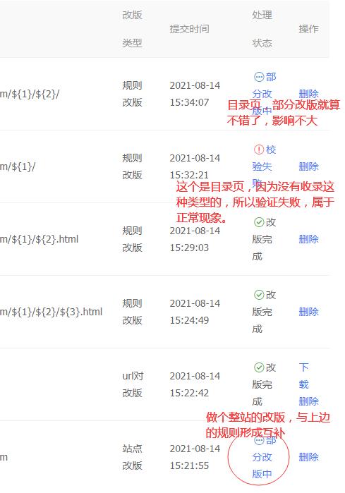 注意:提交的改版規(guī)則要正確、全面。因為你可能只有這一次提交的機會,隨著時間的推移,提交的越來越不容易被百度驗證。