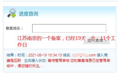 江蘇省的網(wǎng)站備案時(shí)間真的是挺長,不知道是最近這樣還是一直這樣,3個(gè)星期還沒有下來。北京、上海以前備案,很多都是3天就下備案了,河南的大概需要8天左右。而這個(gè)江蘇省的備案時(shí)間真的挺長。
