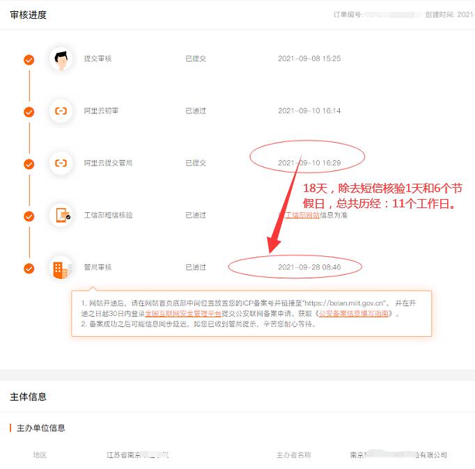 最近幫客戶做了一個網(wǎng)站備案,總共歷時18天,出去中秋放假、雙休和短信核驗時間,總共是11個工作日。這個客戶的網(wǎng)站提交過2個流程,一個是網(wǎng)站備案提交,另外一個是修改老備案主體。時間都差不多。