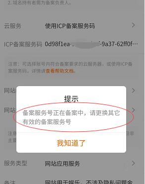 有的朋友進行備案的時候,會有一個提示:“備案服務號正在備案中,請更換其他有效的備案服務號”,這種情況是什么原因呢?大致來講有這些可能性: