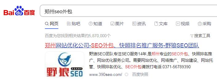 搜“鄭州seo外包”,首位