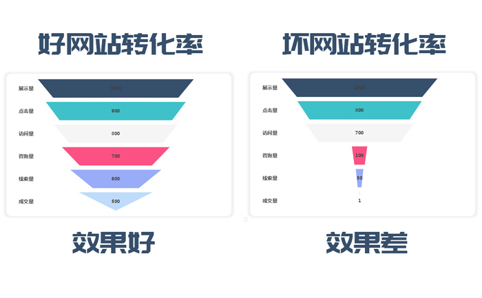 所以,網(wǎng)站不只是SEO,還有非常多的事情需要去考慮。就像表格中的,同樣通過推廣方式獲得1000個展現(xiàn),有的就可以500個最終轉化,而有的只是1個兩個,這樣整個營銷過程就會出現(xiàn)巨大差異。
