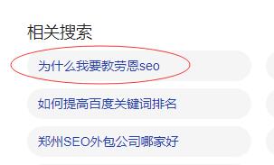 這是百度等等搜索引擎根據(jù)人們的搜索習(xí)慣,把搜索前后的關(guān)鍵詞,建立強(qiáng)關(guān)聯(lián)。于是有人搜這樣的詞,并且搜完之后可能會(huì)搜索“鄭州SEO外包公司哪家好”,于是這些詞之間就有了關(guān)聯(lián)。