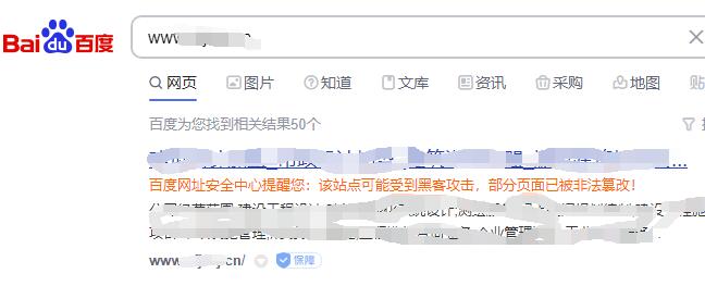 如果你的網站經常被黑,就可能會遇到“百度網址安全中心提醒您:該站點可能受到黑客攻擊,部分頁面已被非法篡改!”的提示,這是百度搜索結果的界面,如下圖: