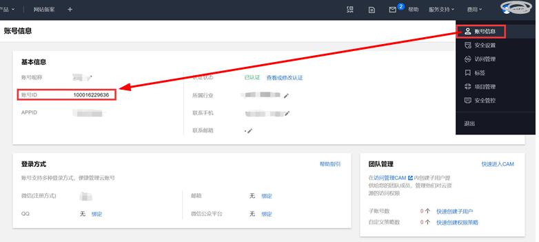 請(qǐng)?jiān)谀尿v訊云備案賬號(hào)下,找一下騰訊云備案賬號(hào)的id如下圖所示: