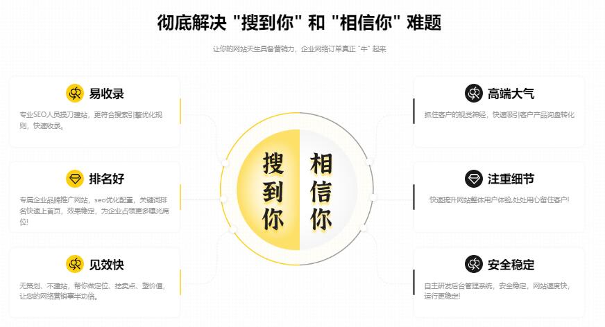 對于“找到你”、“相信你”,這些方面來講,就有更多的內(nèi)容了。我們也是做過很多方面的思考和實踐,基本來說就融入到我們的野狼SEO團隊,永易搜建站團隊上?,F(xiàn)在又增加了一個資質(zhì)代辦——易備案團隊。